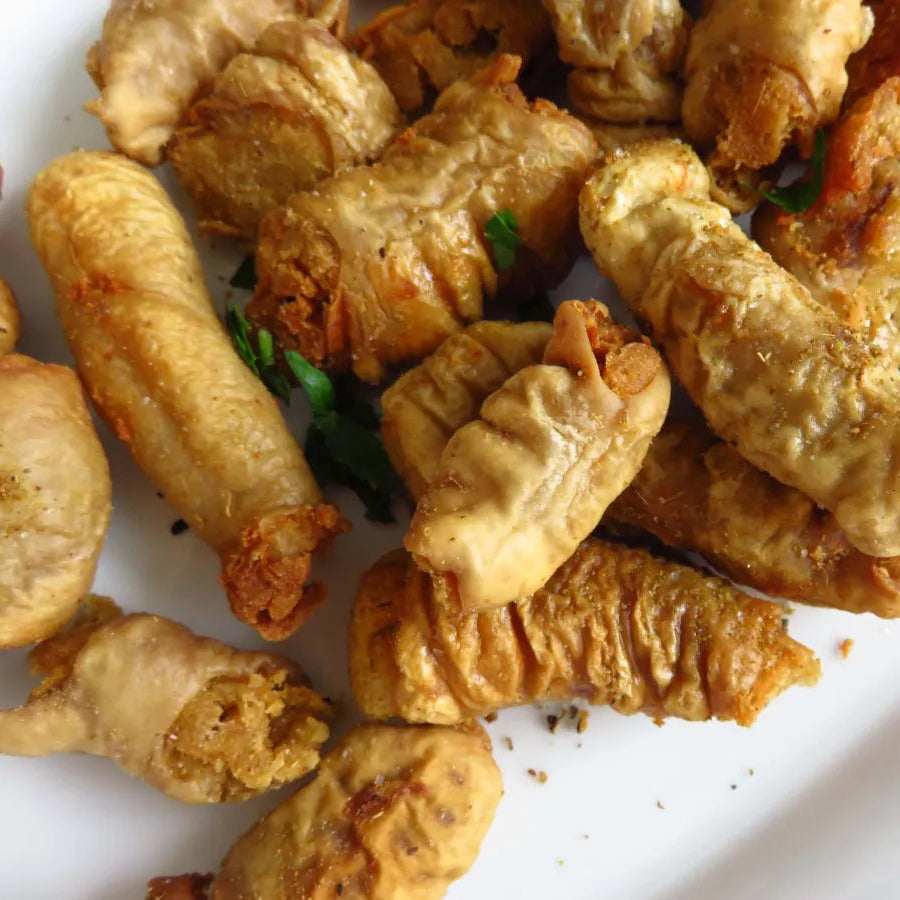Tripas Enfarinhadas aus Paredes, eine wahre Delikatesse aus Nordportugal, sind eine einzigartige portugiesische Wurstspezialität aus Schweinefleisch, Mehl und traditionellen Gewürzen. Mit ihrer rustikalen Textur und ihrem intensiven Geschmack gehören diese Würste zum kulinarischen Erbe des Landes und werden typischerweise gegrillt oder goldbraun gebraten genossen.
